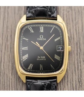 De Ville Quartz Ref. 192.0042 - Vintage Gold Plated Quartz Mens Dress Watch€745.00For sale is a Swiss Made Omega De Ville Quartz men's dress watch with reference number 192.0042, presumably dating back to 1979 based on its serial number. It features an elongated rounded rectangular gold plated case, which measures 31.5mm by 33.5mm and is just under 7mm thick, making it a fairly slim watch for its time. Behind the original Omega sapphire crystal sits a mirror-like glossy black dial with a wavy line pattern that changes in visibility depending on the lighting. Gold tone baton shaped hands indicate the time on glossy gold tone Roman numerals, adding to the vintage dress watch look. The crown is original and bears the Omega logo. The watch is powered by a high quality Omega 1332 quartz calibre with 17 jewels, which is working perfectly.