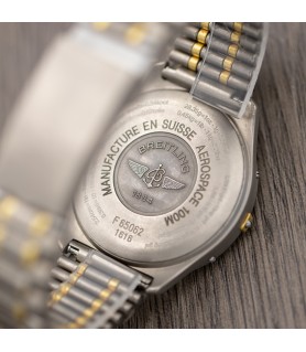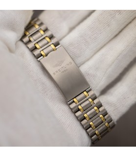 The example sold here has been worn throughout its life, but is still in good cosmetic condition. You will find minor wear marks on the case and bracelet, but no overly coarse damage. Most notably, the sapphire crystal has a minor mark at 11 O'clock, and the bracelet shows some wear to the buckle and gold plated center links. Please study the pictures in this listing well: they show the watch in the condition that it is in, with no digital enhancements to make it look better than it is. We are sure that you like honesty, and so do we. Functionally, the watch has been thoroughly checked prior to listing it for sale, and all features are working perfectly. It was serviced by Breitling in February 2022, where it received a complete overhaul. Accompanying the watch is the original Breitling service box, as well as all the paperwork: International Warranty booklet, Authorized Distributors booklet, and User Manual as well as the 2022 service invoice.