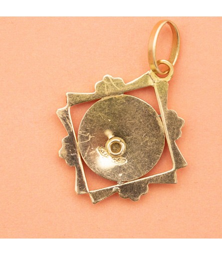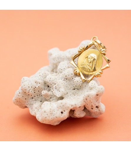 For sale is this Estate Italian mother Mary charm. This royal charm depicts a lovely virgin Mary. A raised portrait of the Veiled Virgin Mary in the centre steals the show in front of the round base. This medallion is encircled with a squared raised border, giving this pendant a magnificent and eye-catching look. This love medallion is crafted in 18 ct gold around the 1960's and hallmarked with an Italian makers mark and a 750 mark.