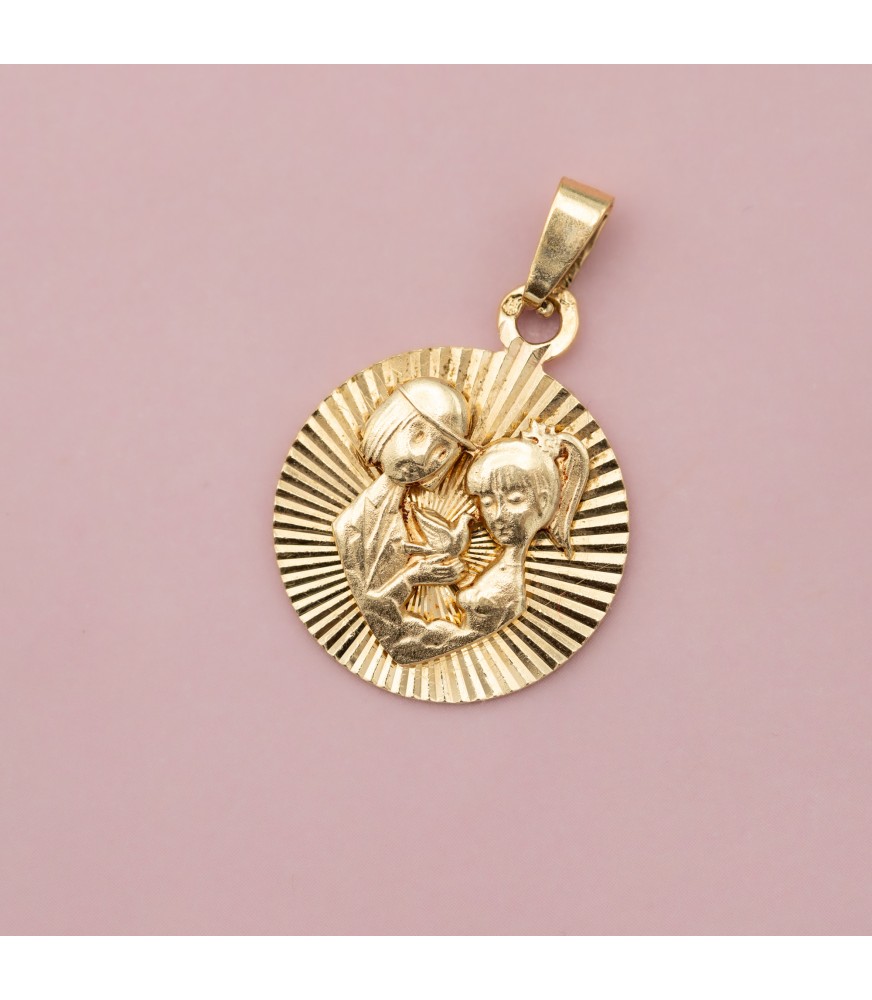 For sale is this romantic pendant crafted in 18 karat pinkish yellow gold. It features the two lovers drawn by the Parisian graphic designer Raymond Peynet. Les Amoureux was designed in 1942 and they become famous all around the world. This Estate charm is hallmarked with a French eagle head and a 750 mark.