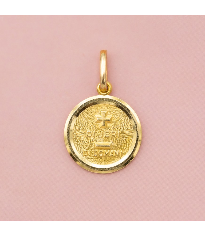 For sale is this lovely small "Più di ieri e meno di domani" love token. This love medallion of all love medallions is first created by the famous Lyon jeweller Alphonse Augis. He based this loving text on a poem of Parisian Rosemand Gérard. She wrote the poem in 1890 for her husband.