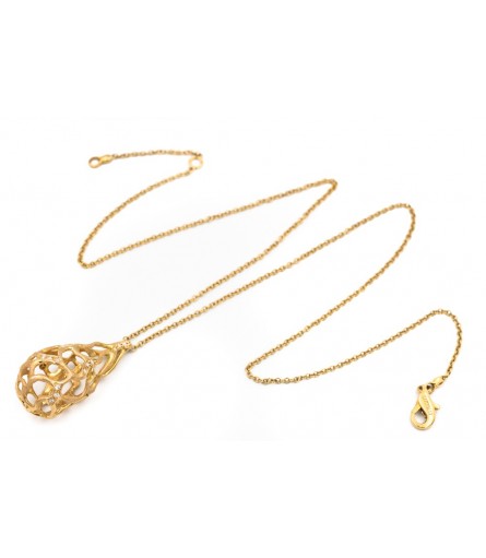 Another characteristic of this skilled goldsmith is to make the gold she uses look peculiar. As you can see on the pictures, this jewel has no ordinaire yellow gold look. The shade of this pendant are as special as the finish she provided on the jewel. Moreover, the wonderful appearance of this champagne gold in its shape is supplemented with beautiful diamonds. fourteen diamonds brighten up this lovely pendant, they combine for approximately 0,15ct.