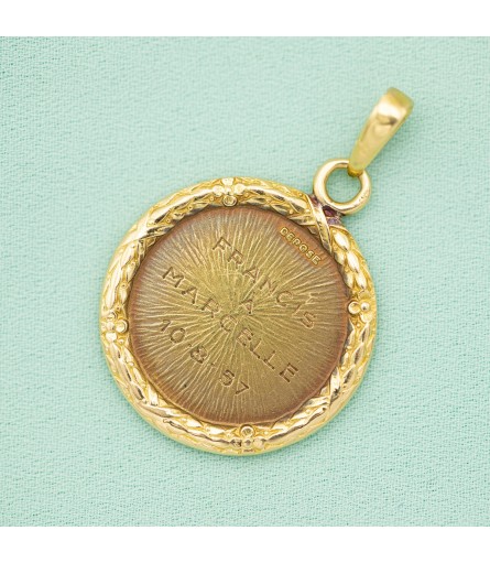 For sale is this "Plus qu'hier et moins que demain" love token. This love medallion of all love medallions was first created by the famous Lyon jeweller Alphonse Augis. He based this loving text on a poem of Parisian Rosemand Gérard. She wrote the poem in 1890 for her husband.