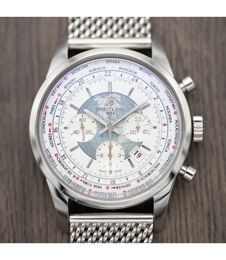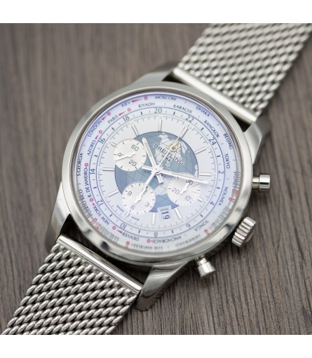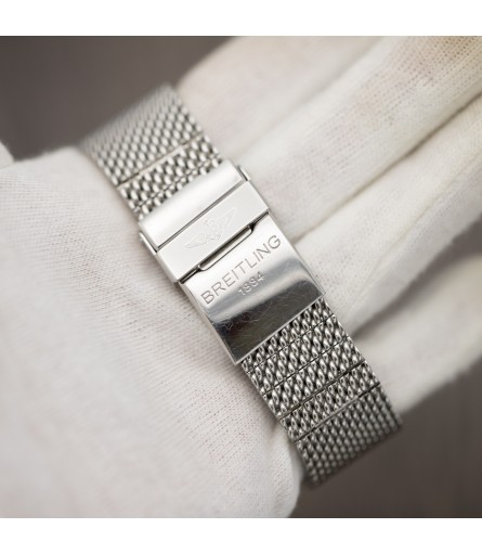 As indicated on the case back, the watch boasts water resistance up to 100m. The crown is original and signed with the typical Breitling "B" logo. Fitted to the watch is its original stainless steel Breitling mesh or "Milanese" bracelet with signed clasp. All bracelet links are present, so it should accommodate any wrist size. The watch is powered by Breitling's Manufacture Caliber 05, a COSC-certified automatic chronometer that is working perfectly.